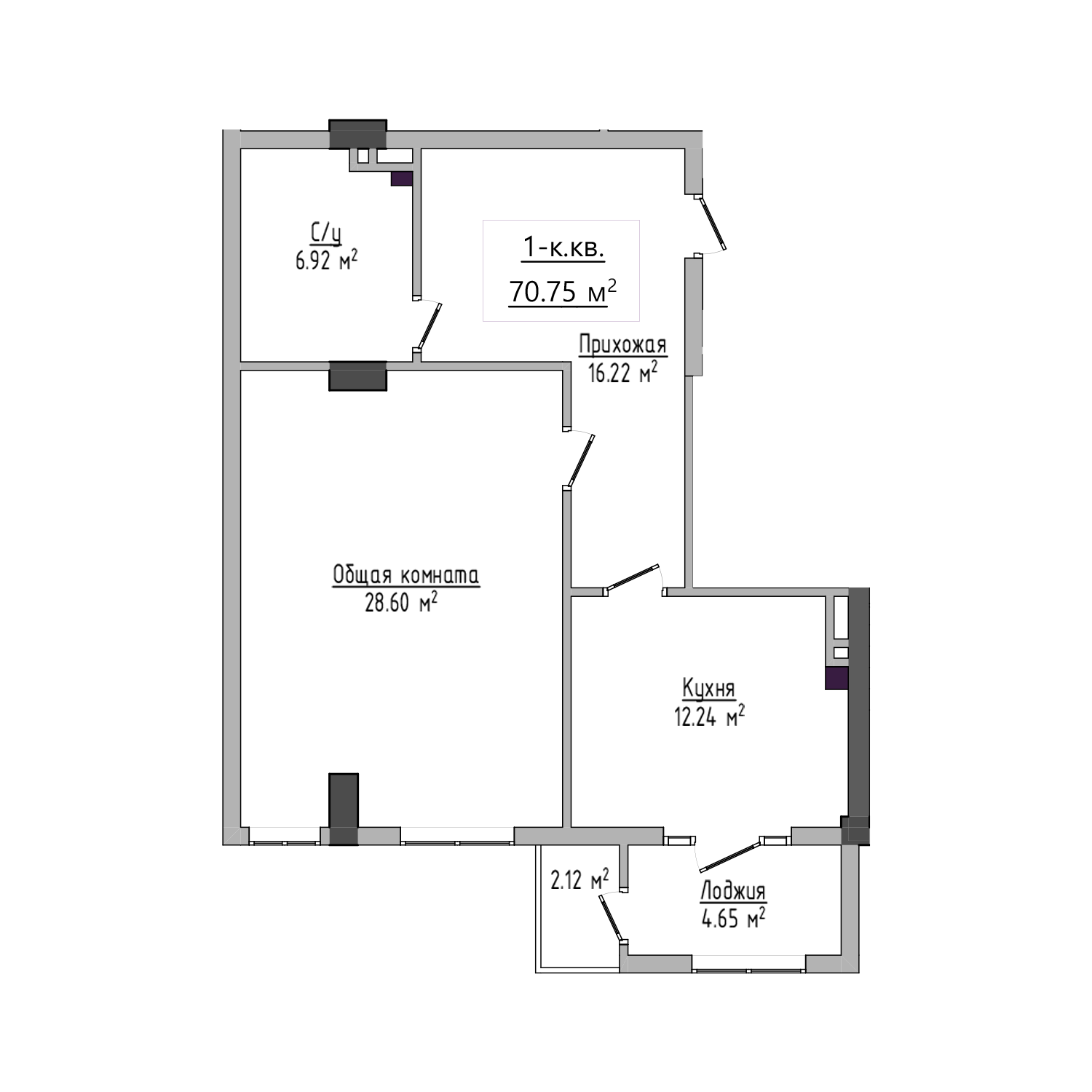 70.75 м²