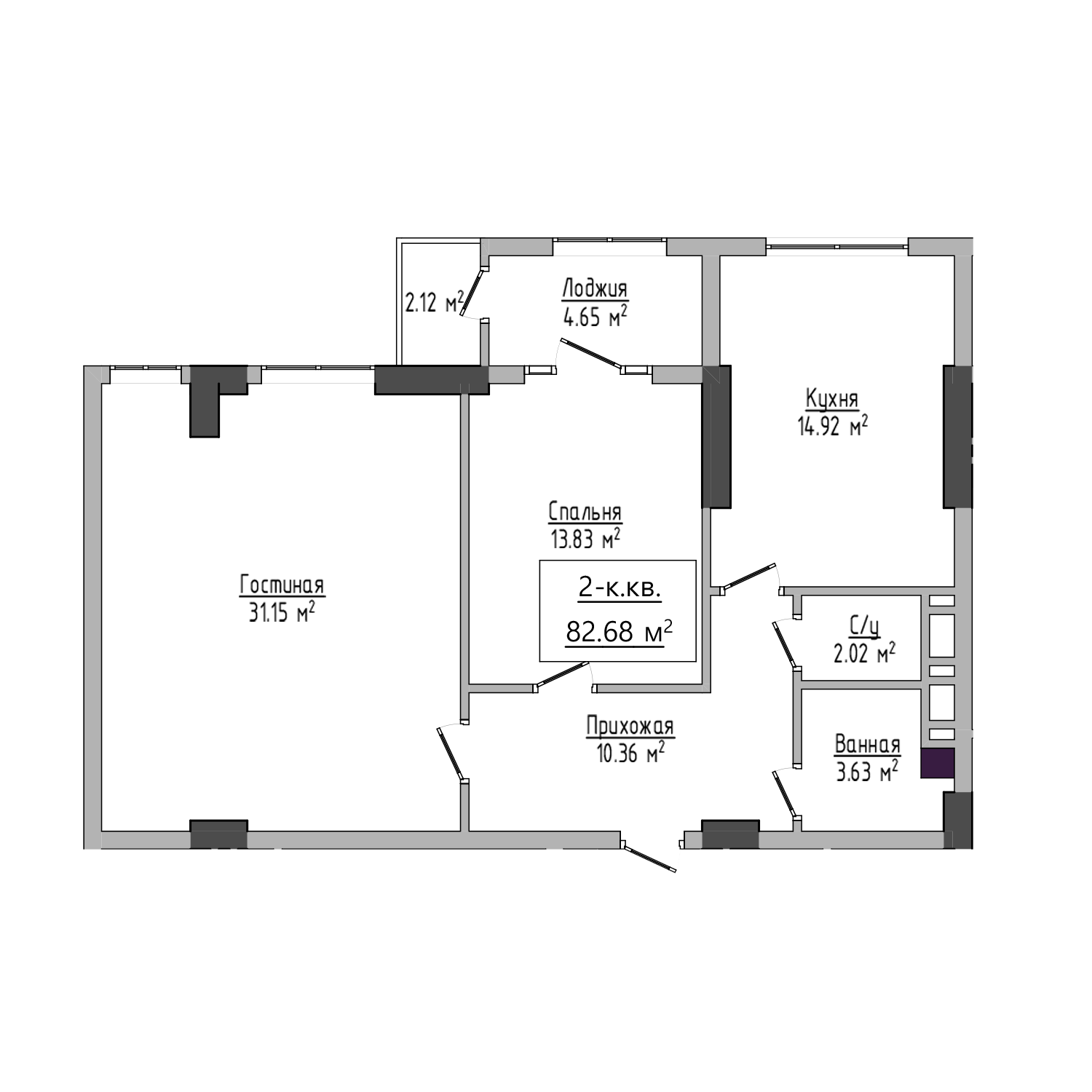 2-комн. Квартира 82.68 м² в ЖК «Оила»
