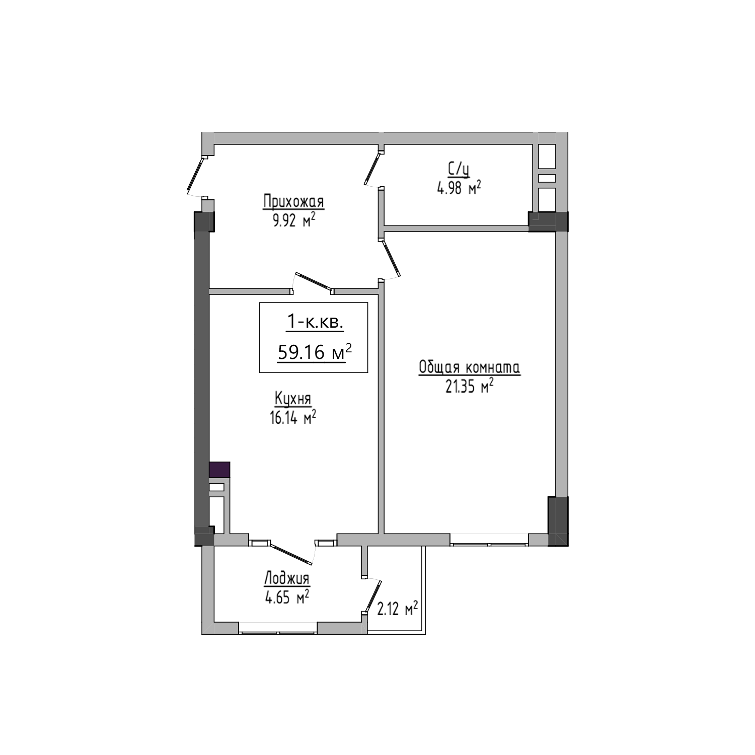 1-комн. Квартира 59.16 м² в ЖК «Оила»
