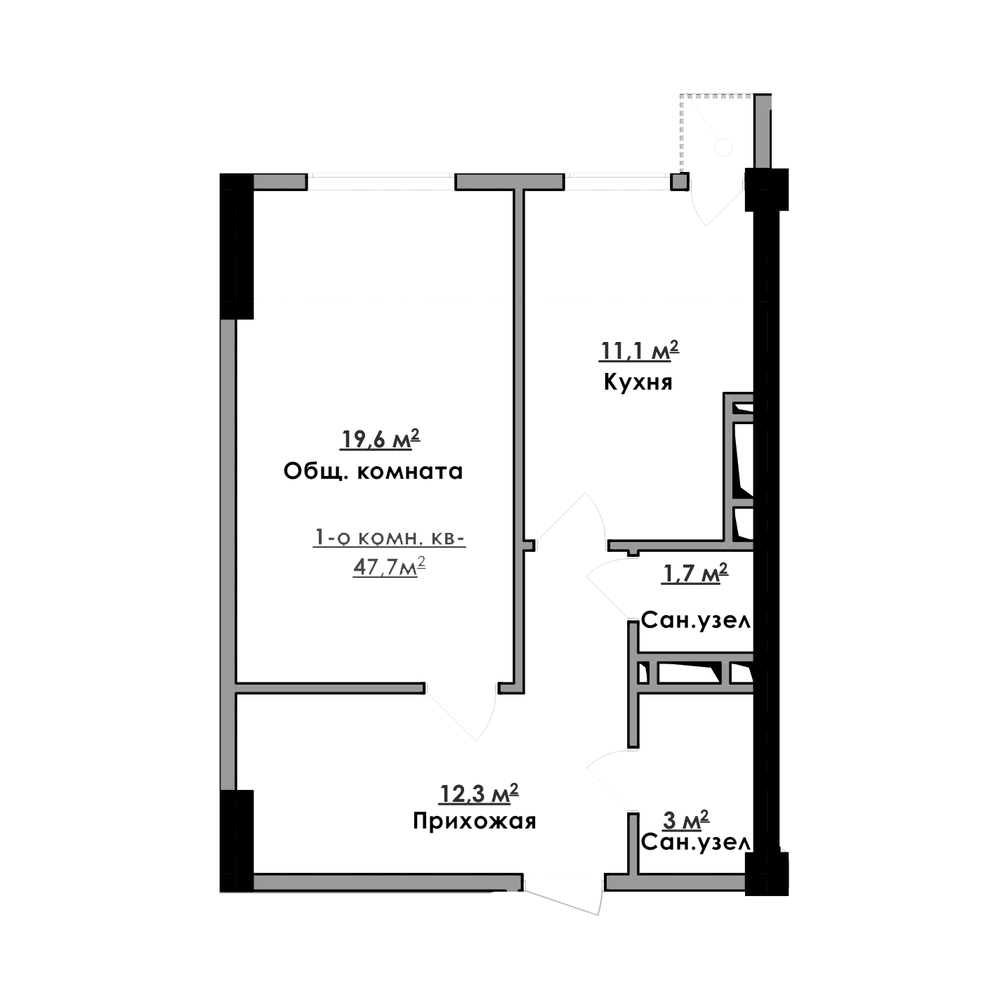 1-комн. Квартира 47.70 м² в ЖК «Империал»