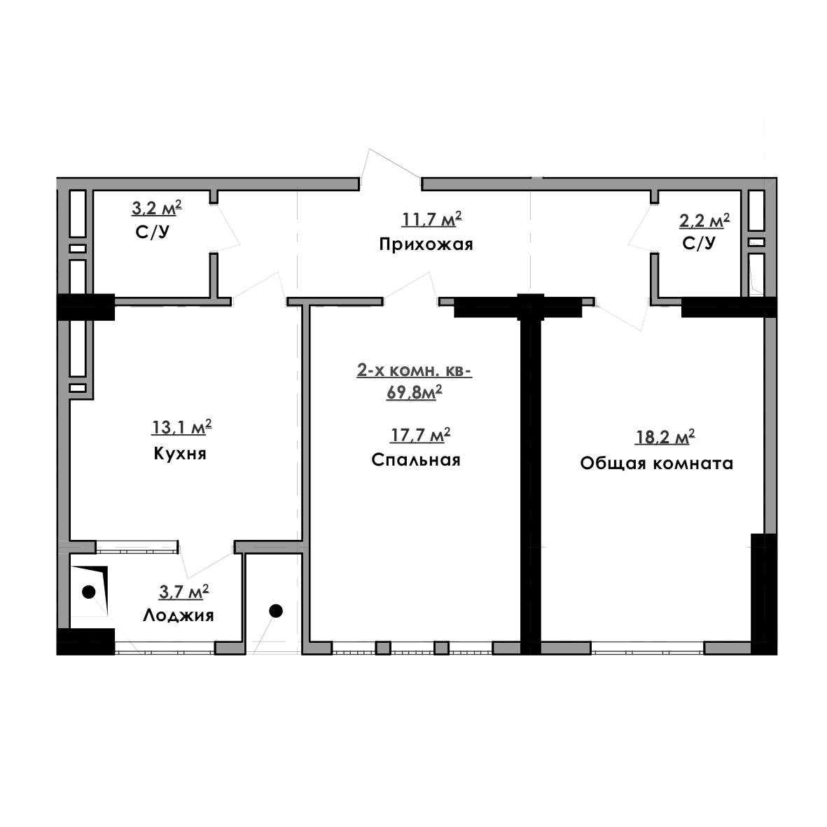 2-комн. Квартира 69.80 м² в ЖК «Империал»