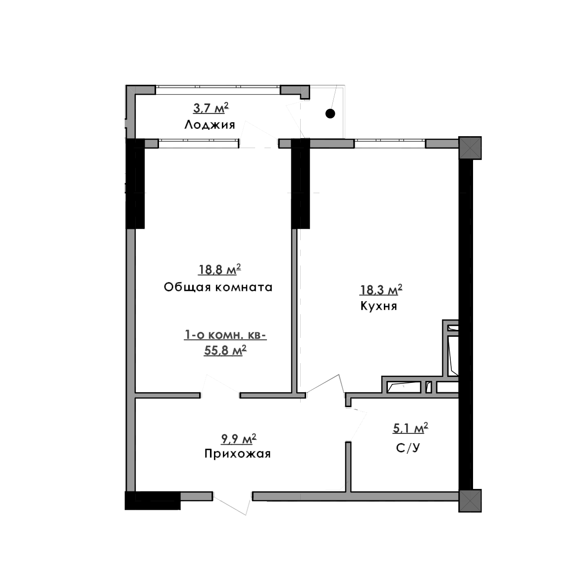 1-комн. Квартира 55.80 м² в ЖК «Империал»