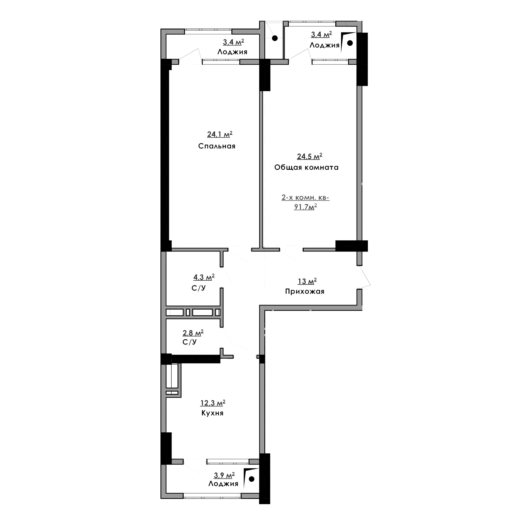 2-комн. Квартира 91.70 м² в ЖК «Империал»