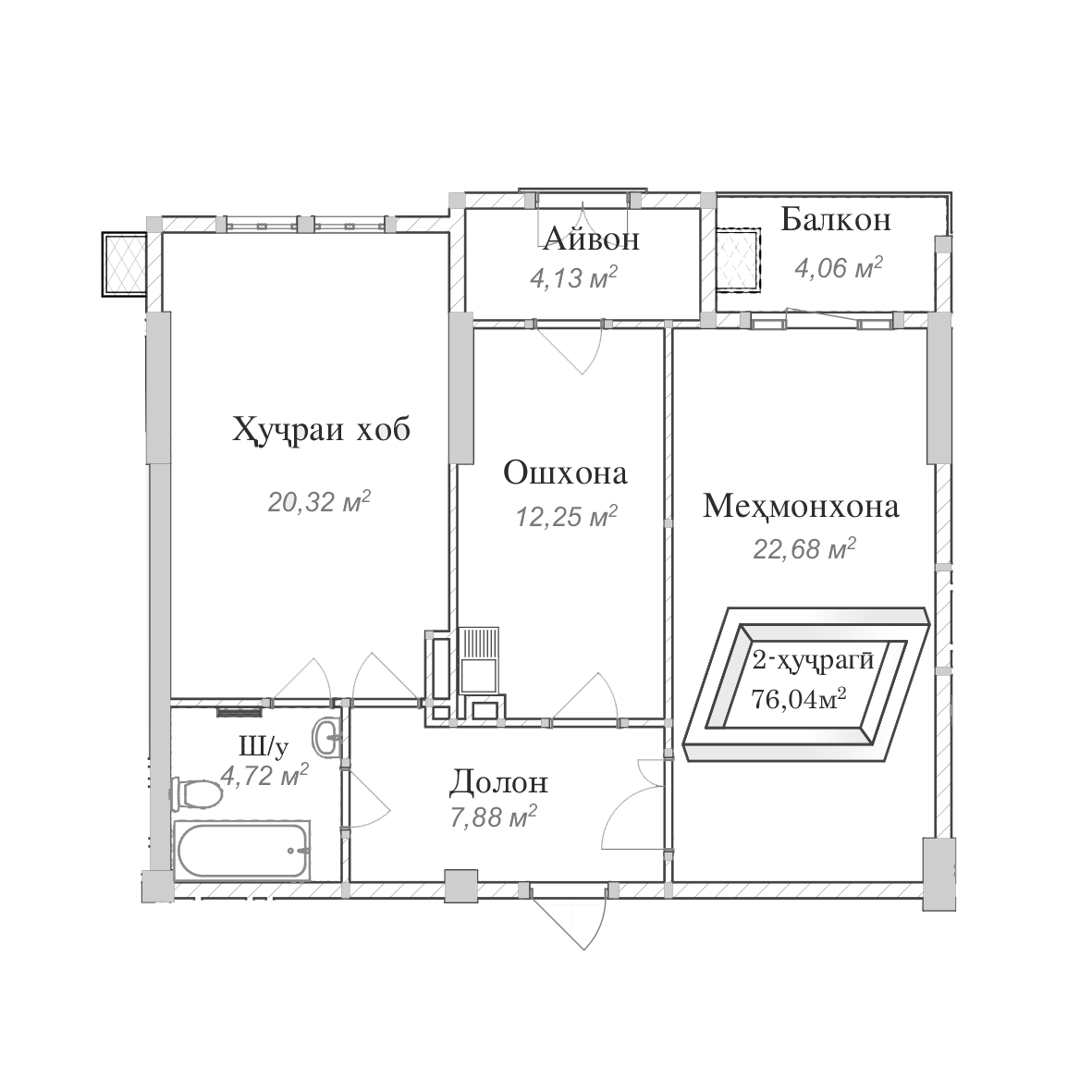 2-комн. Квартира 76.04 м² в ЖК «Согдиана»