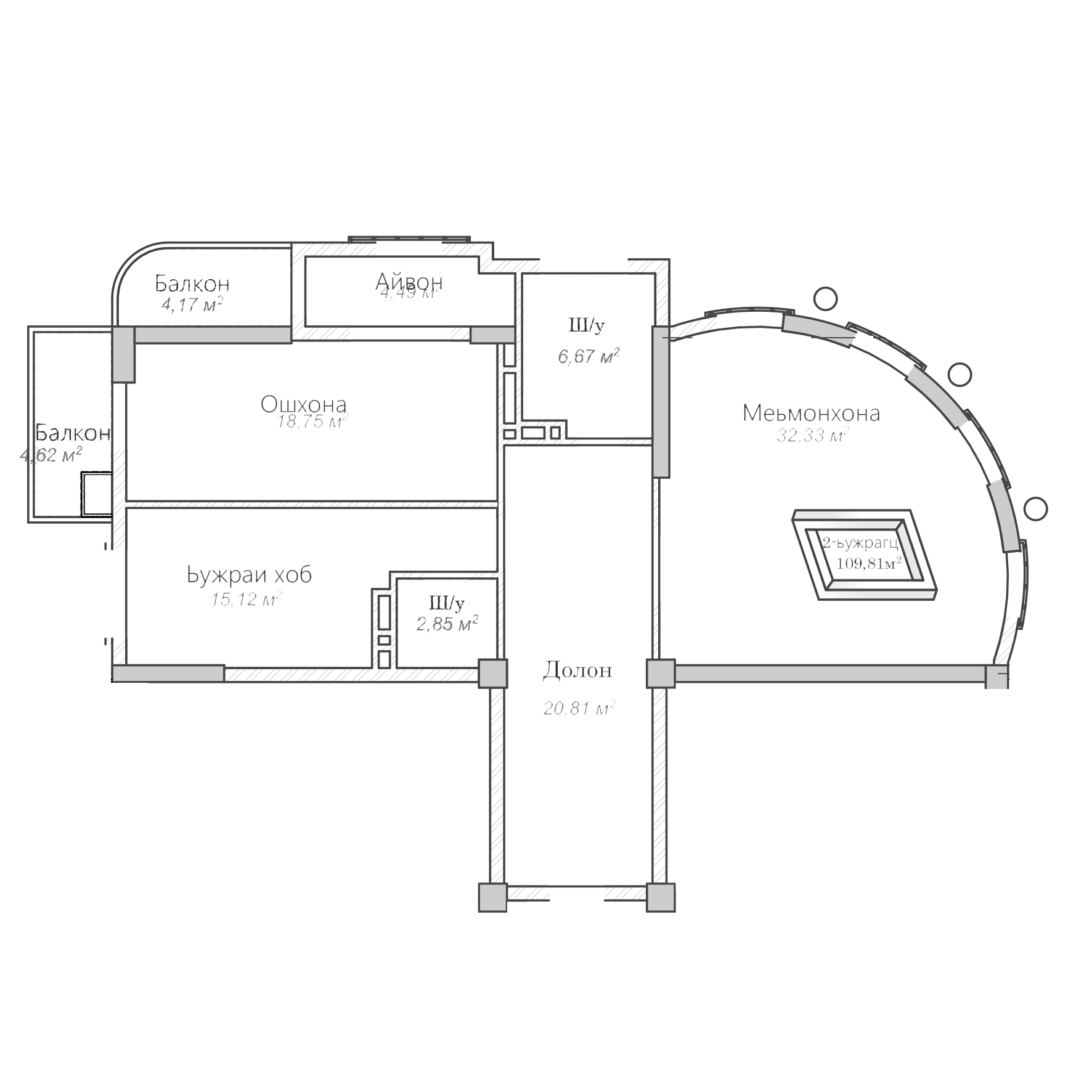 2-комн. Квартира 109.81 м² в ЖК «Согдиана»