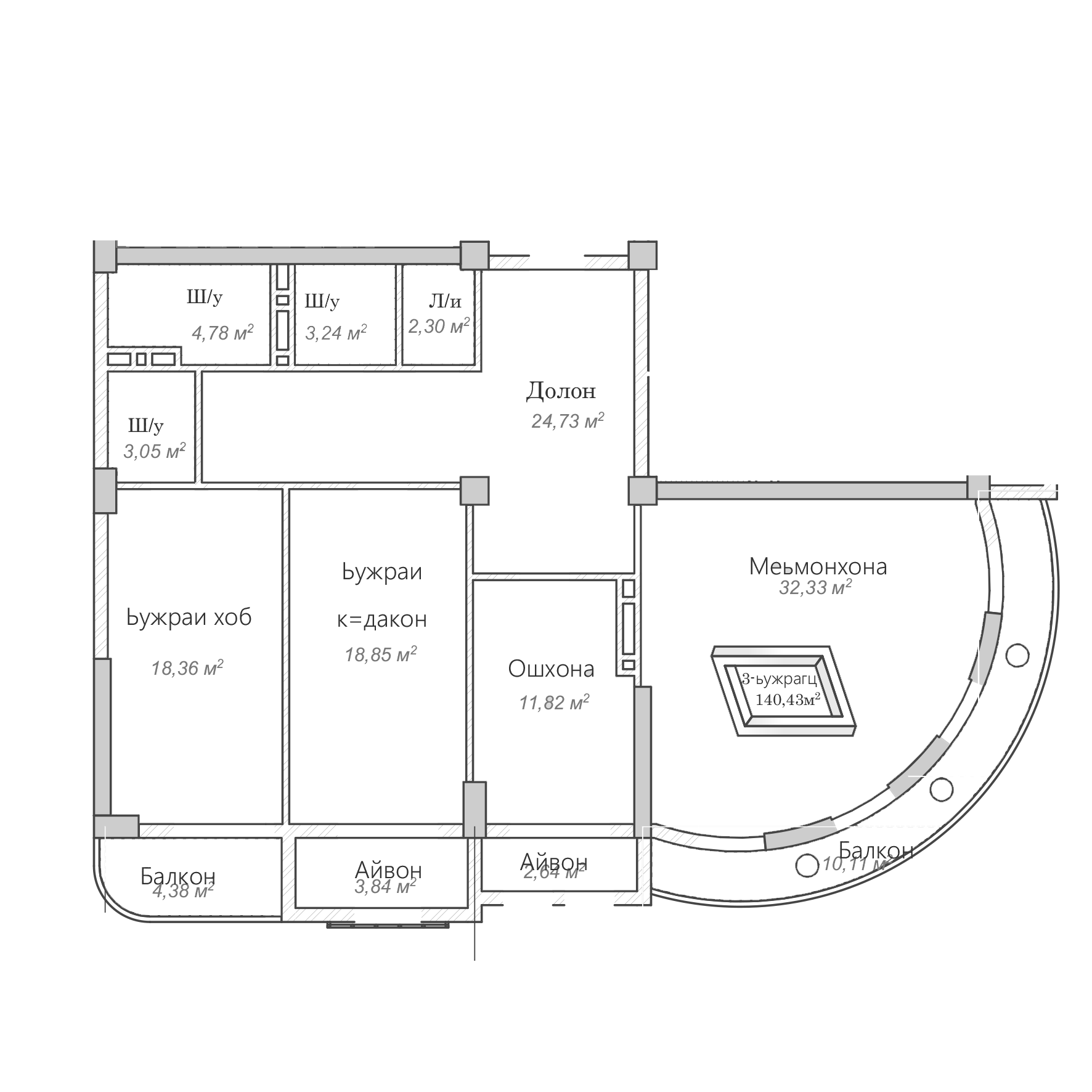 3-комн. Квартира 140.43 м² в ЖК «Согдиана»