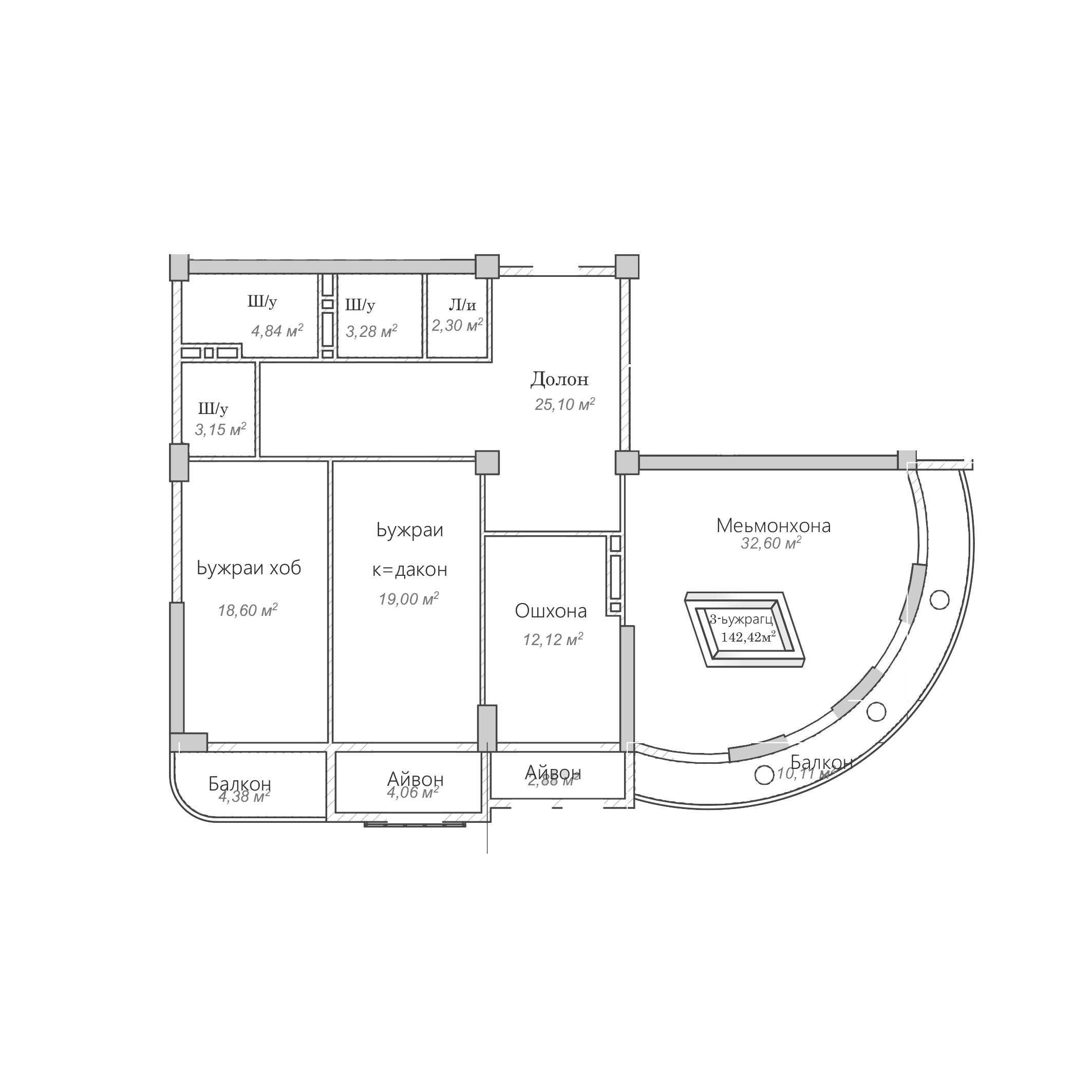3-комн. Квартира 142.42 м² в ЖК «Согдиана»