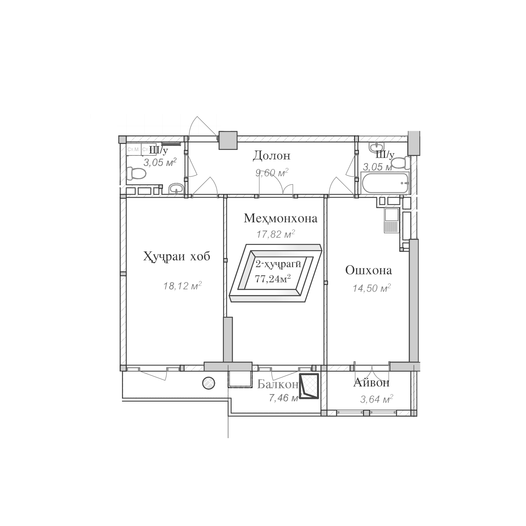 2-комн. Квартира 77.24 м² в ЖК «Согдиана»