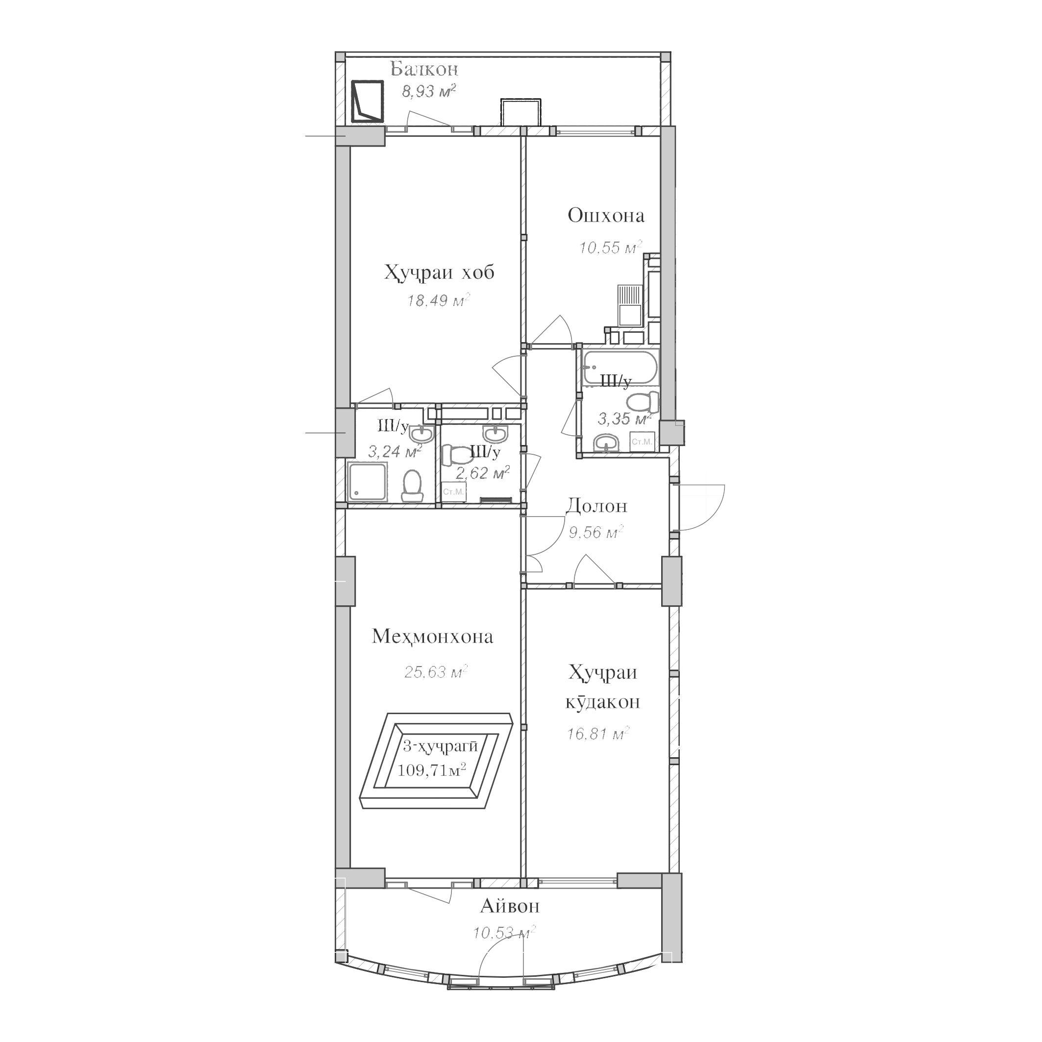 3-комн. Квартира 109.71 м² в ЖК «Согдиана»