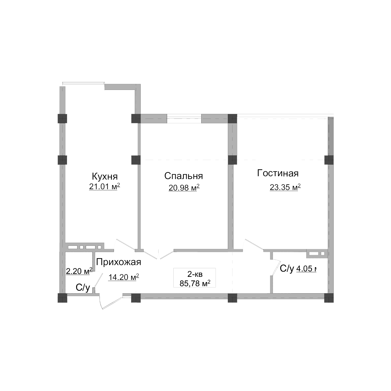 2-комн. Квартира 84.78 м² в ЖК «12 мкр 2»