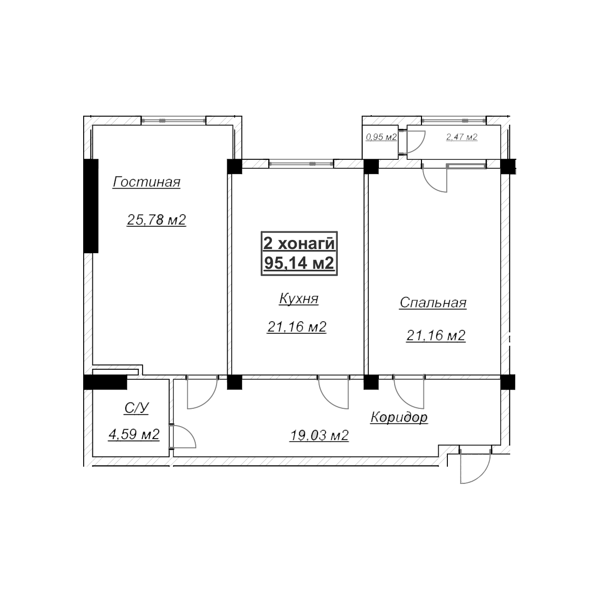 2-комн. Квартира 95.14 м² в ЖК «Бустон»