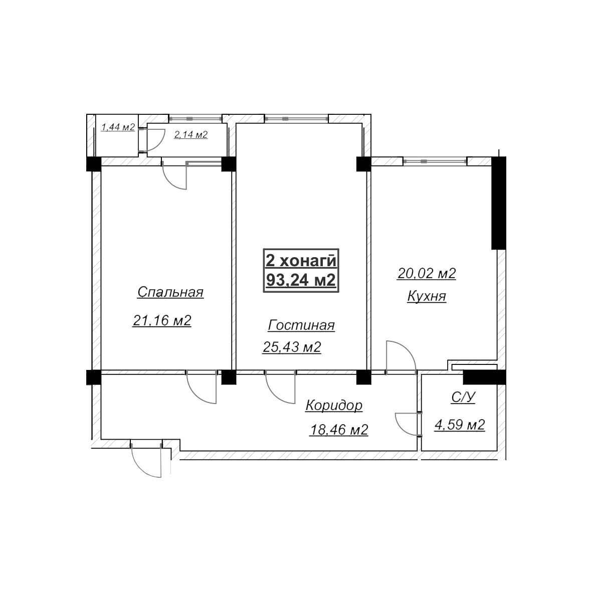 2-комн. Квартира 93.24 м² в ЖК «Бустон»