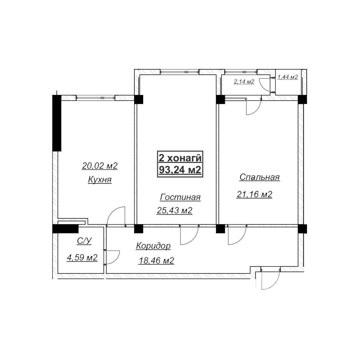 2-комн. Квартира 93.24 м² в ЖК «Бустон»