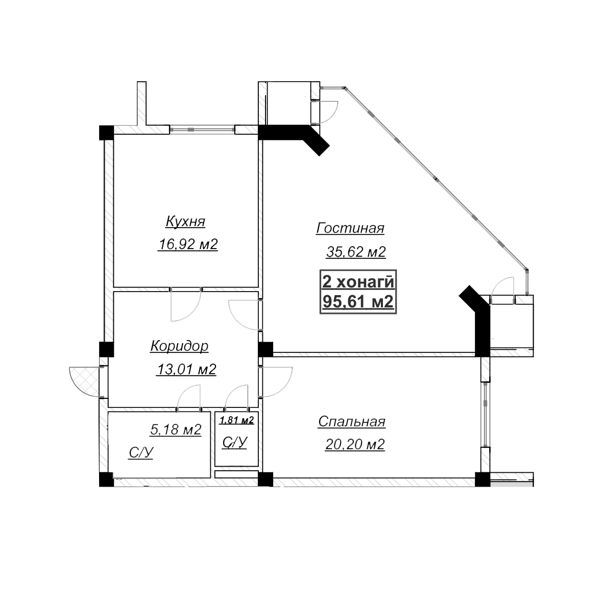 2-комн. Квартира 95.61 м² в ЖК «Бустон»