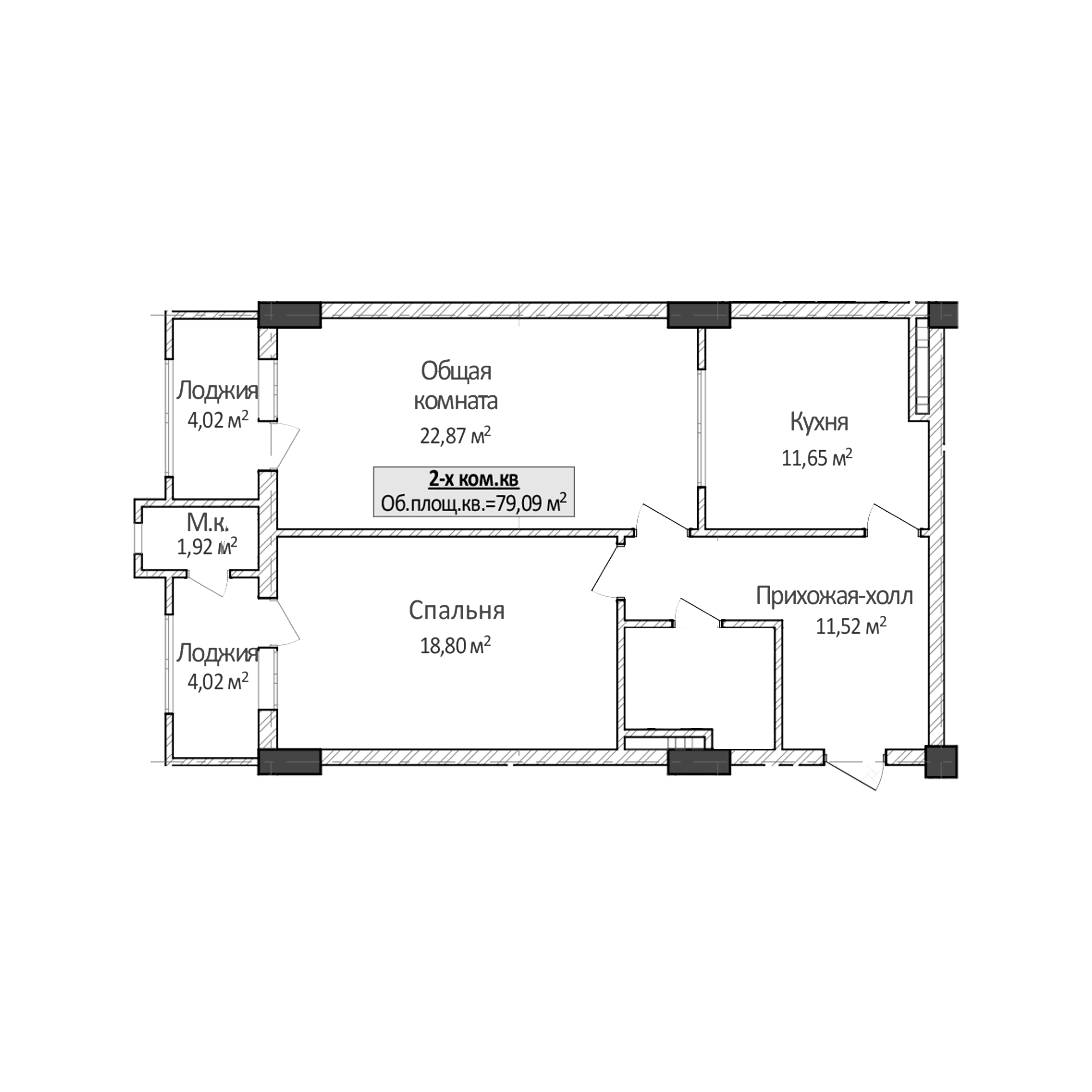 2-комн. Квартира 79.09 м² в ЖК «Тавхид Молл»