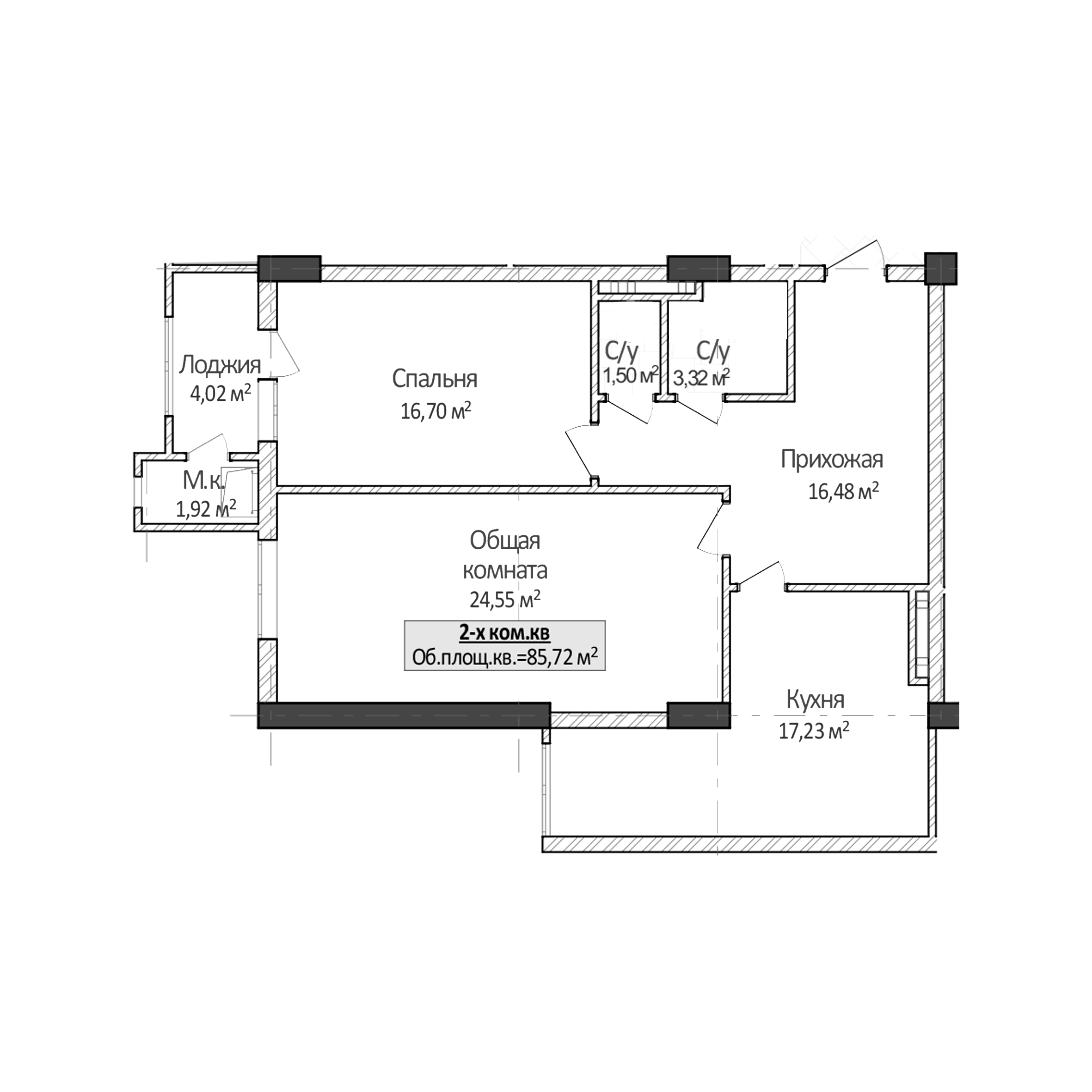 2-комн. Квартира 85.72 м² в ЖК «Тавхид Молл»