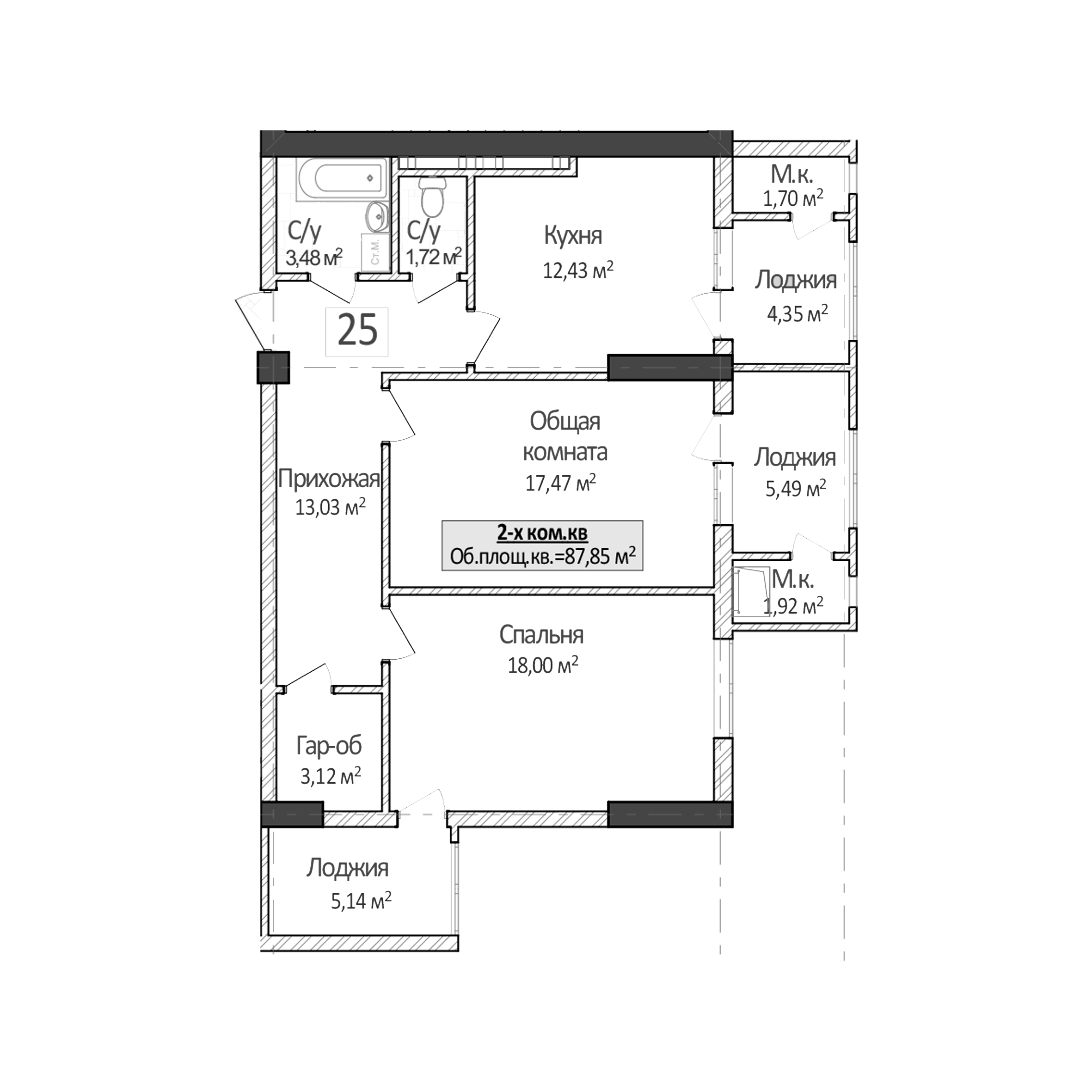 2-комн. Квартира 87.85 м² в ЖК «Тавхид Молл»