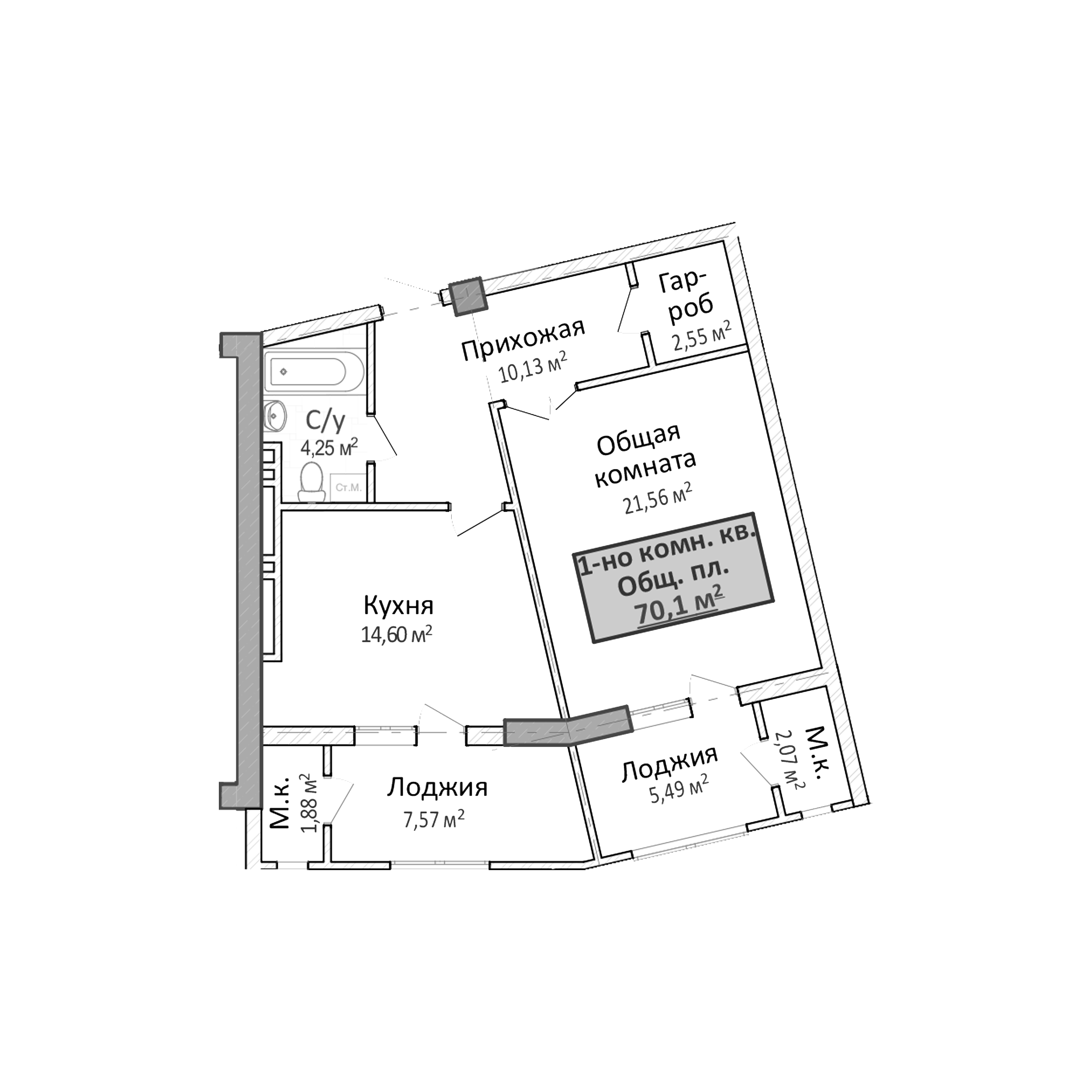 1-комн. Квартира 70.10 м² в ЖК «Тавхид Молл»