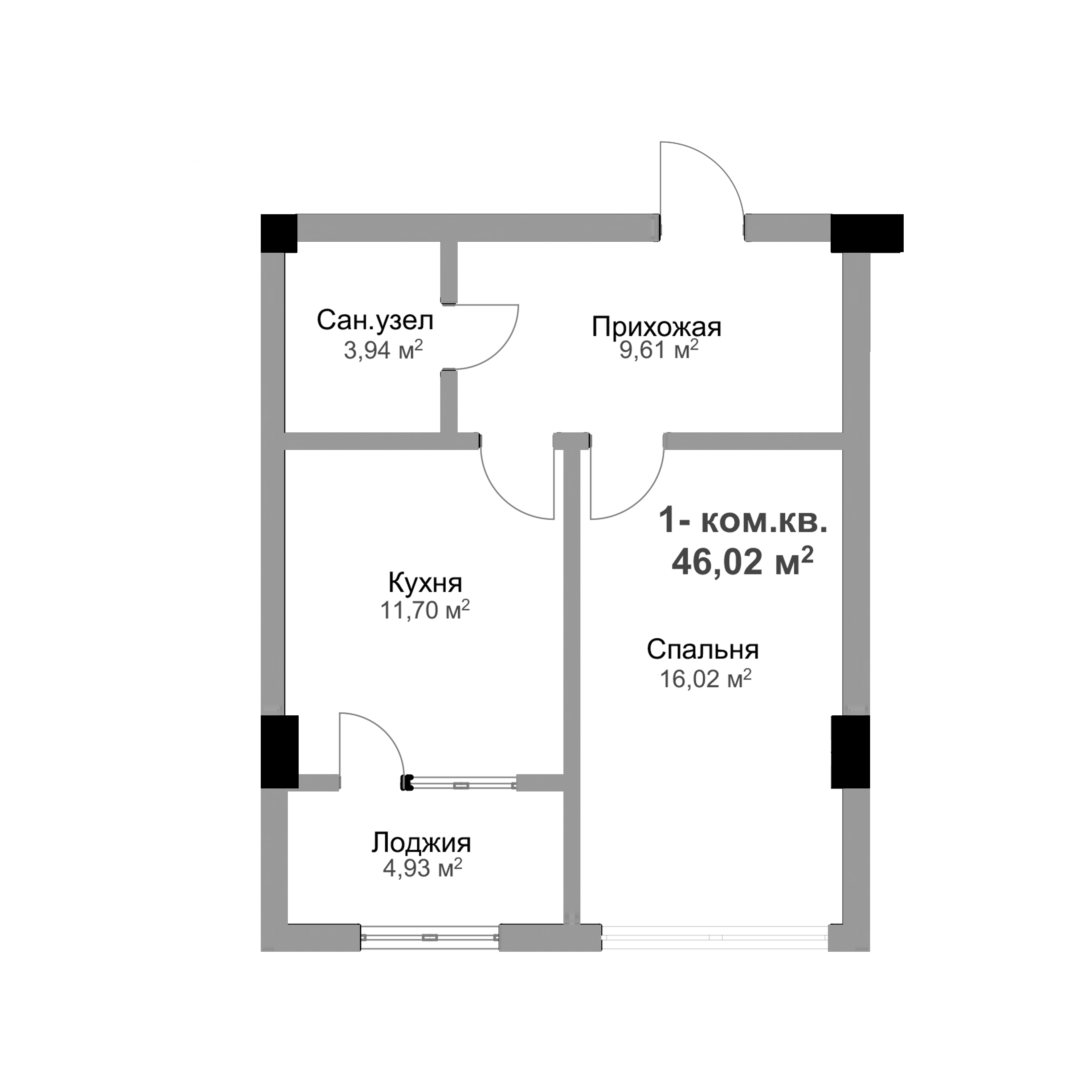 1-комн. Квартира 46.02 м² в ЖК «ЖД "Первомайская - 2»