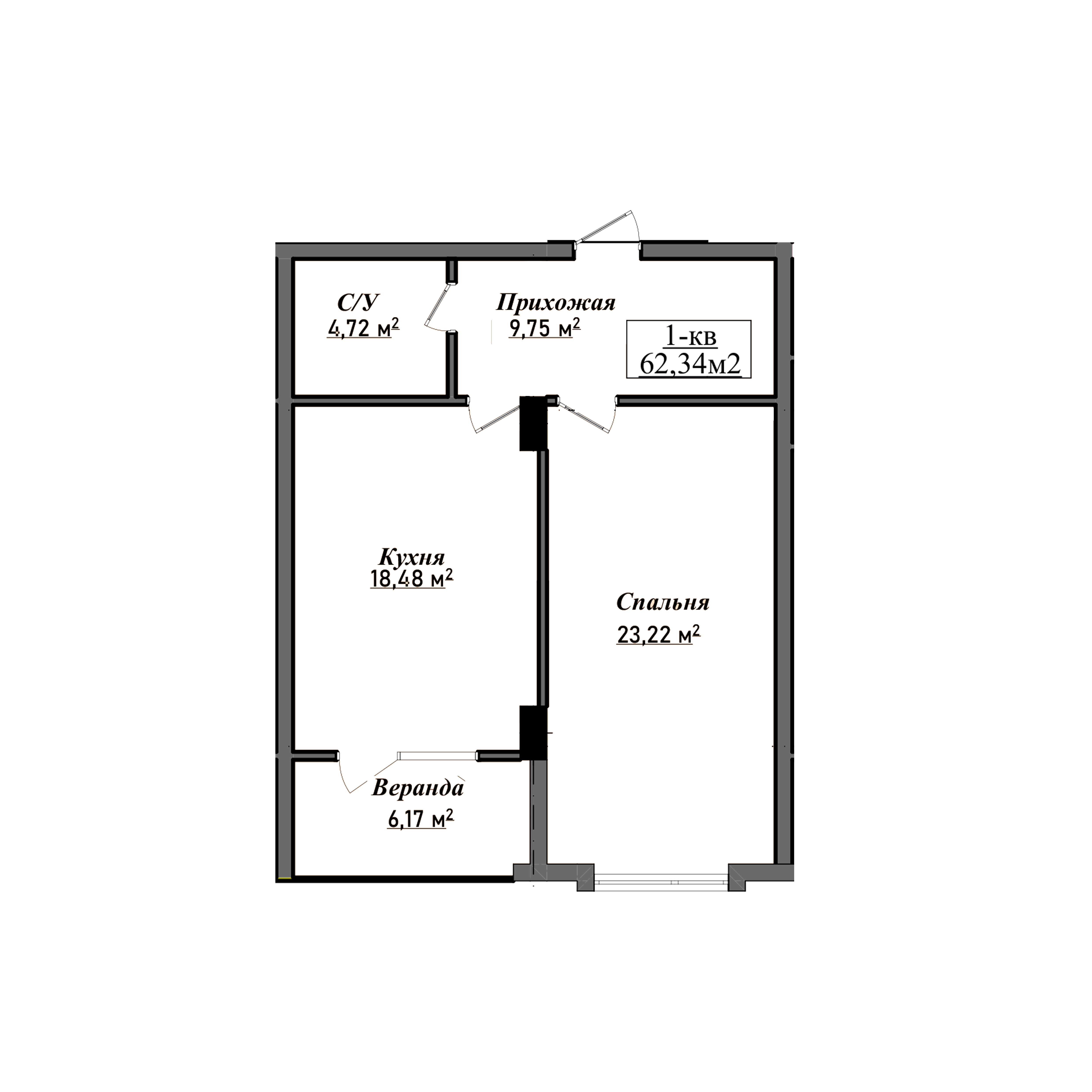 1-комн. Квартира 62.34 м² в ЖК «ЖД "Пахтакор 4»