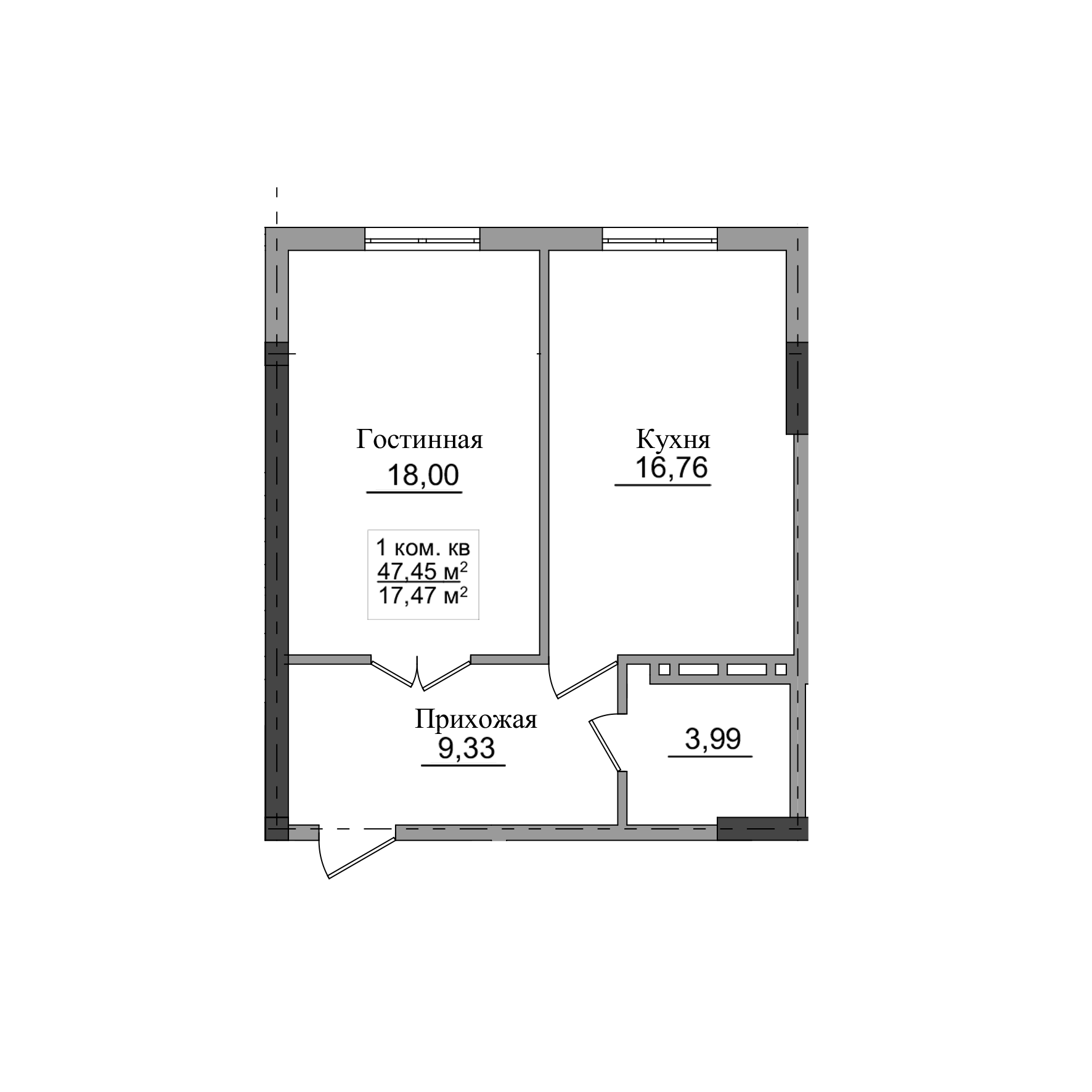 1-комн. Квартира 47.45 м² в ЖК «Фирдавси Плаза»