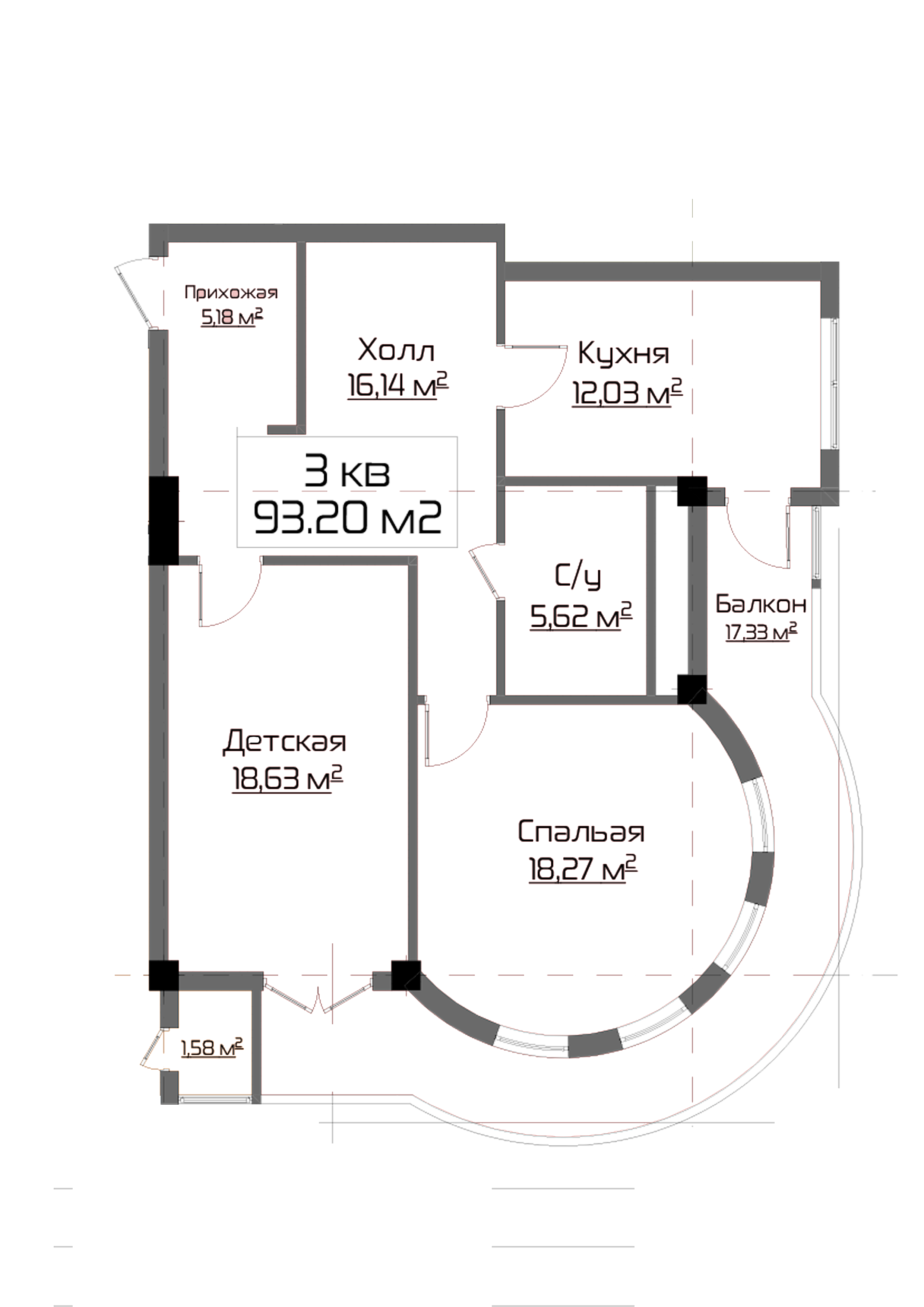 2-комн. Квартира 93.20 м² в ЖК «Sky Park»