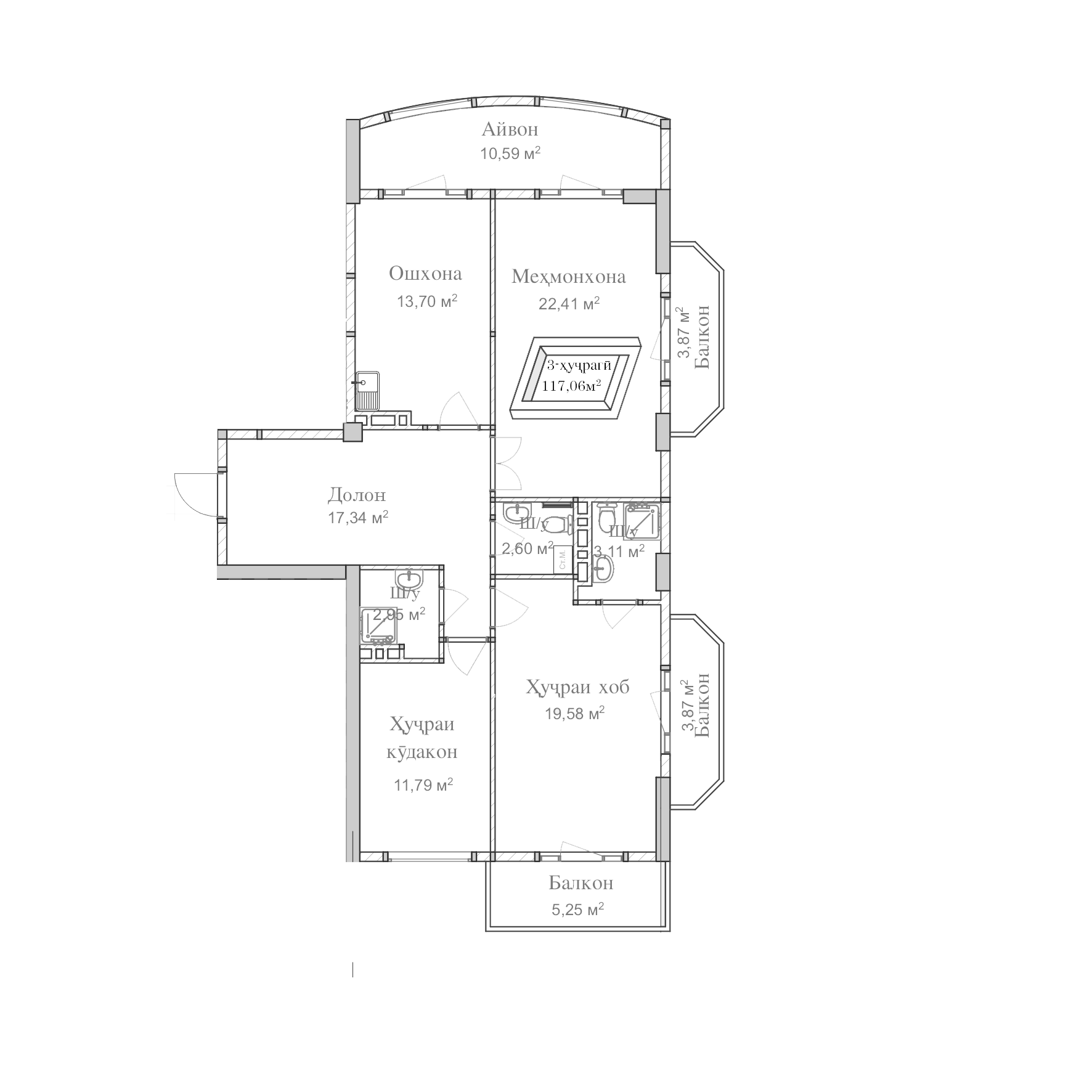 3-комн. Квартира 117.06 м² в ЖК «ЖД "19 мкр»
