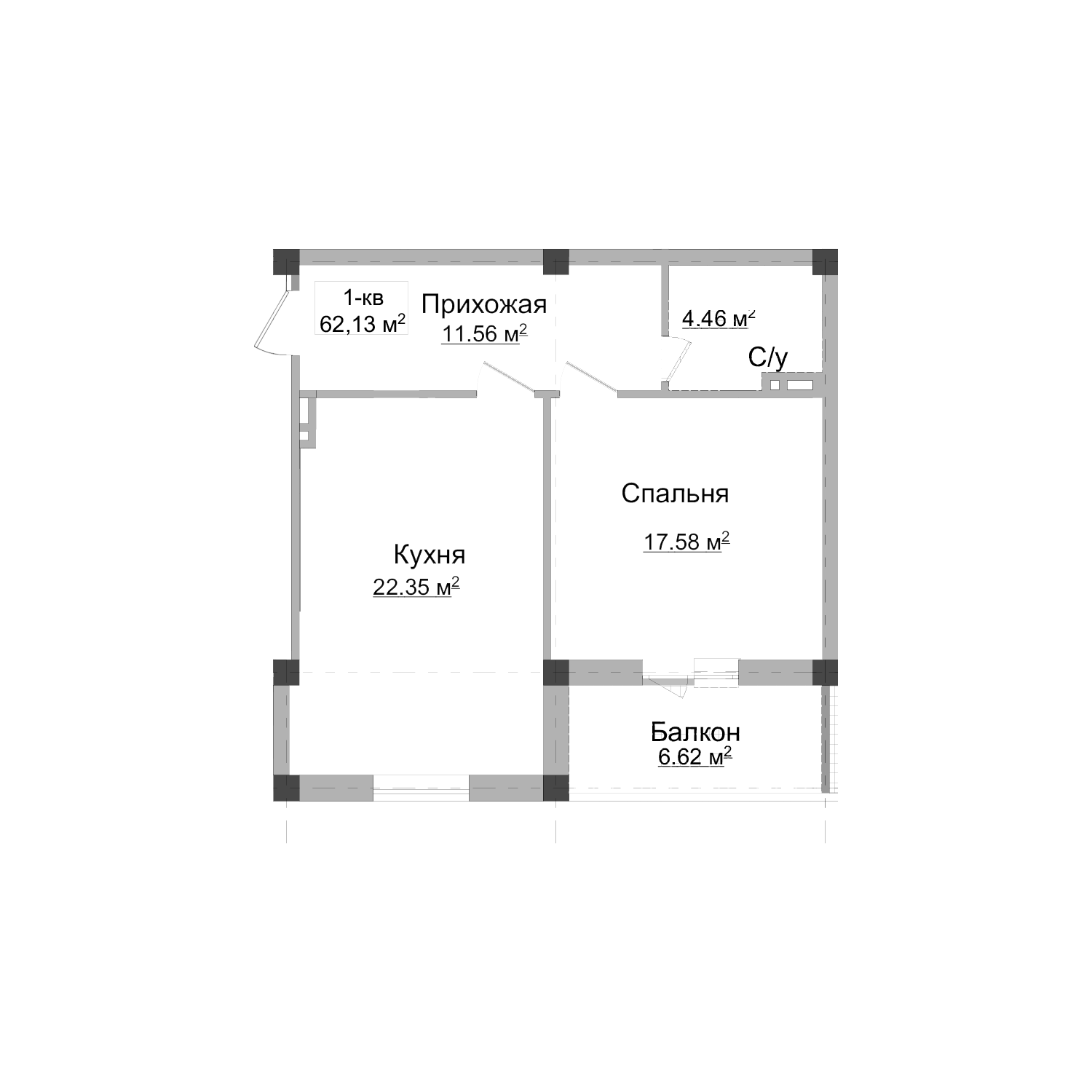 1-комн. Квартира 62.13 м² в ЖК «ЖД "Пахтакор 2»