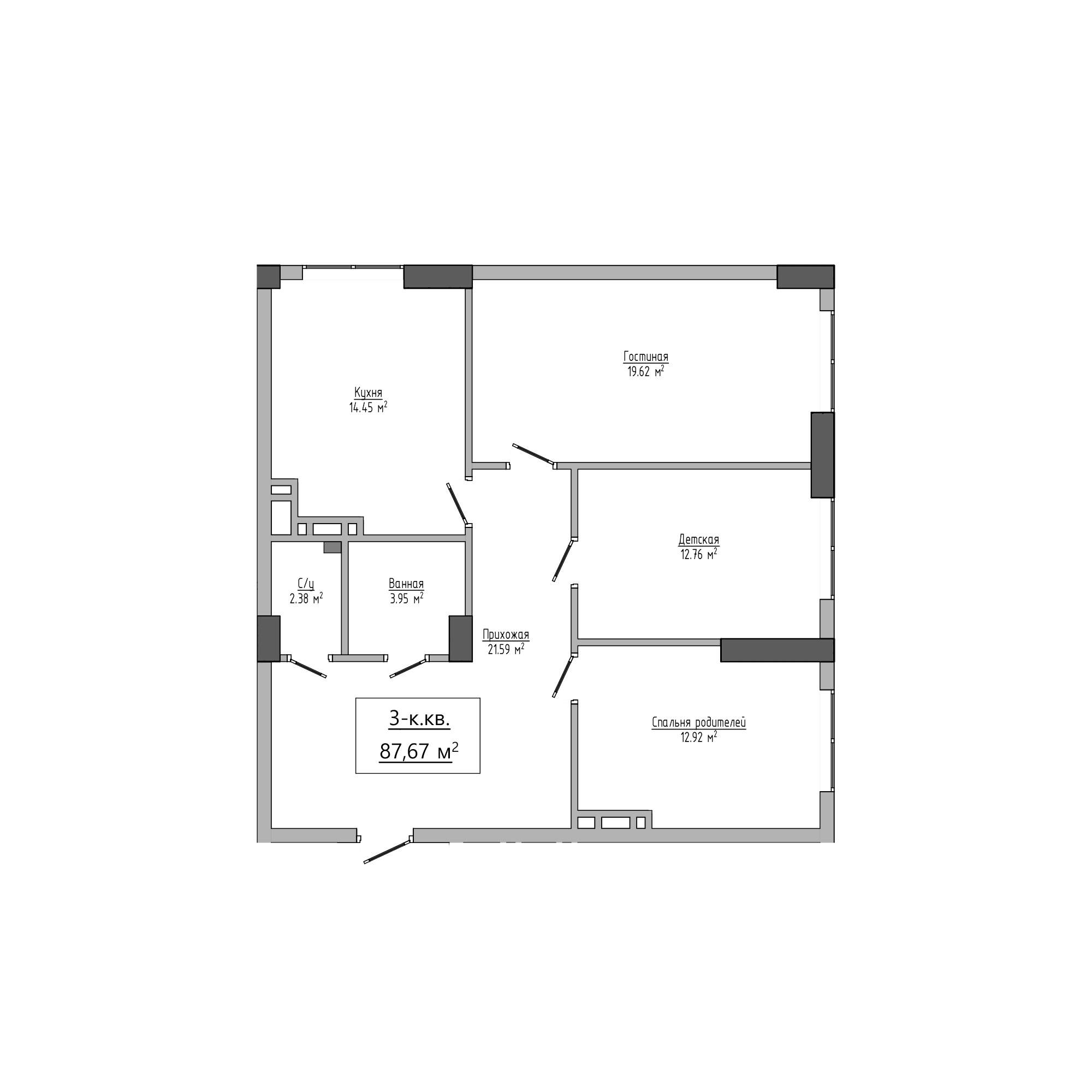 3-комн. Квартира 87.67 м² в ЖК «Оила»