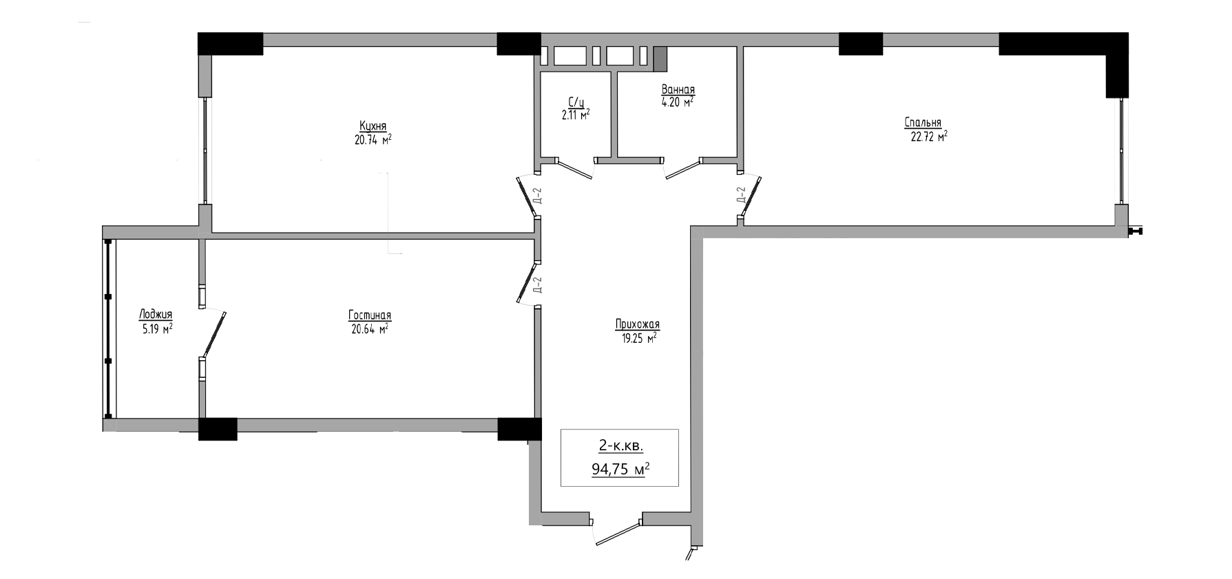 2-комн. Квартира 94.75 м² в ЖК «Пахтакор 3»